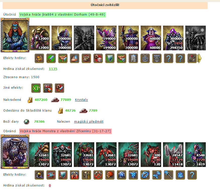 Přemohli jsme většinu tamních monster v čele s jejich hrdinou zvaným ILRAND. Dovezli jsme Ti 3 vzácné fialové krystaly i dobře ukrytý starodávný svitek.