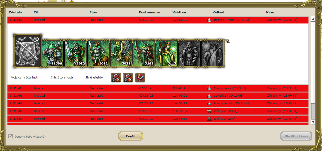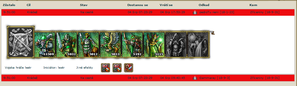 Sotva velitel hlídky dopověděl svoji řeč, svalil se v bezvědomí k zemi. Zachmuřelý Cedrik pokynul lékařům a ti se ujali své práce. Takový začátek dne nevěstí nic dobrého. Cedrik ve skrytu duše vzdor své cvičené a někdy až tvrdohlavé samostatnosti ví, že Lestr - vůdce celého klanu Přátel, nejzkušenější muž vytvrzený a zakalený věky nejtěžších soubojů, stálá a vytrvalá opora klanu, je sluncem, které mu může pomoci spálit černé zlo na pomíjivý prach a dobýt vítězství. Dusot kopyt z nádvoří již po krátké chvíli potvrzuje Cedrikovo pevné rozhodnutí a spěšný kurýr vybavený tajnou mapou se souřadnicemi označujícími sídlo monster uhání směrem k hradu lol aby předal Lestrovi žádost o pomoc. Cedrik si zkouší představit, jak asi město plné smíchu (lol), rachejtlí a veselí zareaguje. Teď je však řada na něm, aby prošel zbrojnici, klenotnici, navštívil kupce s magickými svitky, zmobilizoval všechny své poddané i posily hlídající těžbu ve zlatých dolech. Po šesti hodinách důkladné přípravy přemítá Cedrik, proč ještě nedostal odpověď od Lestra. Po krátkém váhání bezpečně připevní krátkou zprávu s popisem situace poslednímu holubovi, kterého dostal od Lestra darem, a s těžkým srdcem jej pouští na cestu. Ani ve vzduchu není bezpečno, ale tentokrát je do dvou hodin zpět uklidňující odpověď. První posel nedorazil, důvod není těžké domyslet. Lestr se tedy o nebezpečí dozvěděl až díky holubovi a okamžitě chystá celou armádu, v duchu své pověsti panovníka, vůdce i ochránce. Přesný plán cesty a připojení vojsk je stanoveno. Cedrik navštěvuje majestátní kopuli vizionářů a snaží se s jejich pomocí dozvědět více. Okolo zříceniny je podivný klid, takový je výsledek bádání. Přesně podle plánu však vizionáři hlásí, že vojska vládce Lestra jsou v pohybu. Cedrik prohlíží situaci s pomocí jasnovidných vizionářů a znejistí. Co to má znamenat? Tak slabé vojsko a slíbený zkušený velitel Lardiel navíc nestojí v čele? Bez tohoto vycvičeného paladina, válečníka, vyzvědače to nelze vyhrát. Pomocí plnokrevných zpocených koní a jejich rychlých kopyt se však brzo dozvídá vysvětlení – Lestr použil kouzelný svitek a skryl skoro celou armádu před zraky všech. Poslal však Cedrikovi další holuby ke komunikaci, dbaje hesla „bez spojení není velení“ a ukázal mu pravý stav věcí. Statisíce hrdých vojáků vedených Lardrielem v plné zbroji kráčí směrem ke zlověstnému hradu, připraveni a odhodláni zničit nepřítele. Cedrika mrazí v zádech nad touto silou. Z minulých bojů si však pamatuje kouzla, kdy z jeho vojsk většina v hrůze uprchnula. To byl ale slabší protivník a dal se porazit i tak. Zkouší se ujistit u Lestra, kdo vyhraje. Lestr mluví o mocném kouzle, o silné odvaze neustoupit a jistém vítězství, nezbývá než věřit. S větou „kostky jsou vrženy“ posílá Cedrik všechny svoje muže do boje a připojuje se k Lardrielovi. Nedbaje varování Lestra, posílá 65000 svých mistrů meče do boje s cílem alespoň zjistit situaci. Dopadá to dle Lestrovy předpovědi. 90% tohoto předvojska se v hrůze obrátí na útěk, ostatní jsou na hlavu poraženi a informace o síle protivníka žádné… Můžeme vůbec vyhrát? S touto otázkou a dbaje Lestrových rad aktivuje Cedrik všechny svitky, které pomohou jeho i Lardrielovým vojákům oslabit nepřítele a posílí naše armády. Země se chvěje, rachot pochodujících vojsk přerušuje hlas, je zase ráno, obloha neskutečně modrá a slunce svítí. Ale žádný den není dobrý k umírání, leda pro nepřítele. Pochod pouští zvedá oblaka prachu, nedá se dýchat, horko k zalknutí. Mít tak džbán plzeňského piva nebo moravského vína. A najednou stojíme přímo proti sobě. Takový děs, nelze jej popsat. Cedrik poznává v čele monster vládce Juggernauta a vzpomíná si, jak kouzlo jeho zajatého syna způsobilo útěk armády v boji o jeden měsíc dozadu. Je to tu znovu, 90% Cedrikovi armády prchá. S těmi nejvěrnějšími však rychle staví alespoň přenosné opevnění, jak ho to učili ve škole taktiky. Koutkem oka pohlédne směrem k Lardrielovi. Na jeho tváři panuje klidný úsměv. Všechna vojska neochvějně stojí při něm, nikdo nevzal nohy na ramena. Naopak, s odvahou buší do vlastních štítů a pancířů a sami šíří hrůzu v řadách nepřítele. Zato čtvrtina monster začíná prchat v hrůze. Cedrik si vzpomíná na Lestrova slova o mocném kouzlu a už v jiném smyslu chápe, co dokáže odvaha (je snad odvaha kouzlo? – o tom mluvil Lestr? – ano, odvaha je to kouzlo do každé situace). Na víc však nezbývá čas. Narychlo postavené opevnění umlčí nápor prvních 2500 monster a pak se zřítí pod návalem dalších nemytých šeredných a polonahých těl příšer. Bitva je v plném proudu a nezbývá než krýt sebe a muže po svém boku, tak jako vždy. Přítelem příteli a nepříteli přítele nepřítelem. Zabíjet je nutnost, která se po tolika bitvách stává rutinním řemeslem, to však nic nemění na vlastní smrtelnosti. Krev splývá s kůží a dříve jasný zvuk zbraní se stává tupým, stejně jako jejich ostří. Není rozeznat zraněné od mužů zalitých krví cizí. Zranění ani nikdo nepočítá, počítá se každý, kdo bojuje, živý či raněný. Krátký závan čerstvého větru poodkryl hrůzu bojiště. Jasné záblesky praporců našich spojených vojsk s nadhledem převažují nad hrstkou potrhaných vlajek nepřátel. Dílo hrůzy je dokonáno. Supové, hyeny a okradači mrtvol se postarají o zbytek. Lardriel kyne vrchním chrámovým kněžím a ti konají zázraky na poli medicíny východu, oživují a uzdravují. O mnoho set let později bude na jejich umění marně vzp