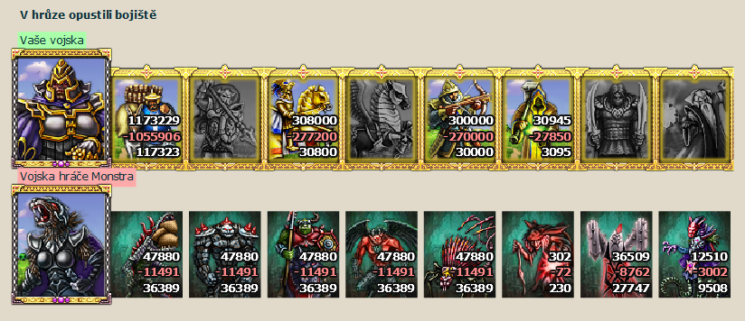 Už jsem neváhal ani chviličku, vydal jsem rozkaz k okamžitému nástupu vojsk a přípravě k odchodu. Než se vojáci seřadili – proti tak mocnému nepříteli se nám nejvíce osvědčila kombinace rytířů na koních a střeleckých jednotek (aktuálně vybavených nejmodernějšími kušemi) podporována léčiteli a samozřejmě spoustou pomocného personálu (panošů, nosičů zavazadel apod.) – zajistil jsem od hradního kněze požehnání. Rovněž jsem požádal o kouzla na zvýšení obrany jednotek, posílení jejich bojového ducha a vytrvalosti, síly a nakonec i na urychlení přesunu. Pak jsme vyrazili na cestu. Samotný přesun ke zřícenině hradu zabral část noci, ale proběhl relativně v klidu. Jako seřadiště jsme před útokem použili blízký důl (uvnitř chráněný před magií monster), ve kterém jsem nechal vybudovat polní lazaret pro naše budoucí zraněné. Že jich bude hodně, bylo zcela jisté. Průzkumníci vysláni k monstrům přinesli zprávu, že vlivem působení mocné magie vůdce monster se země v blízkosti zříceniny už mění na zemi démonů.