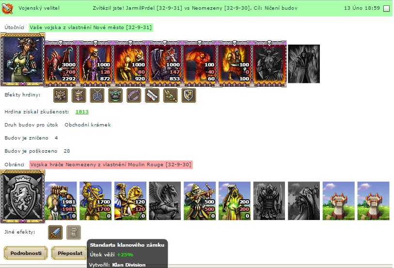 Jsem nesmírně rád, že má kampaň sklízí takový uspěch. Je skvělé, že mám ve hře tolik přátel, kteří mi opakovaně předhazují svá vojska na porážku. Například Valibuk88 si po prvním obětování nakoupil zcela novou armádu za perly a hned mi je nabídl, což nešlo odmítnout. Oceňuji i hráče, kteří sice nemají žádné obětní vojsko a tak mi alespoň předhazují své hrdiny v táborech. Bohužel nemám čas to všechno likvidovat, tak buďte prosím trpěliví, určitě se k vám dříve či později dostanu